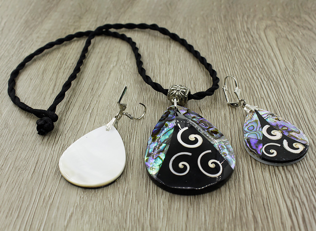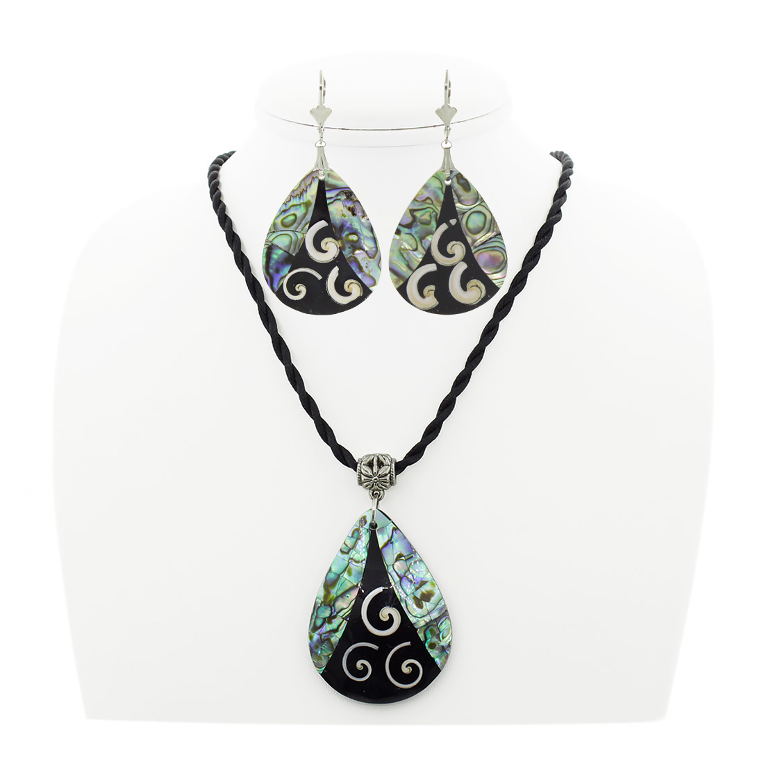 Набор "Волна" перламутр гелиотис серьги и кулон на витом шнурке
