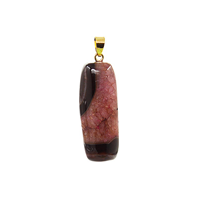 Кулон агат "Королевский" черный и розовый, бочонок 14х40мм