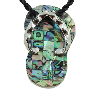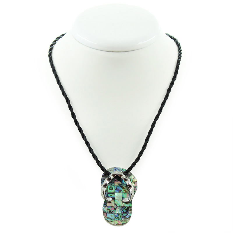 Летний кулон из кусочков перламутра-гелиотиса "Сланцы". Длина веревочки 45см.