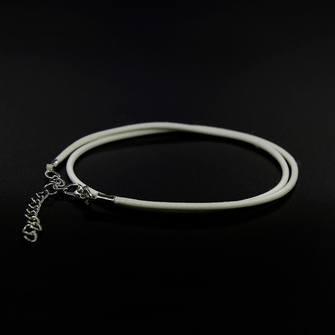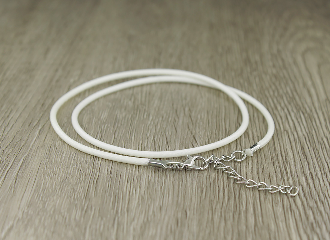 Этот белый шнурочек из плетеного текстиля подойдет для любого кулона. Длину можно регулировать с 45 до 50см с помощью удлинняющей цепочки