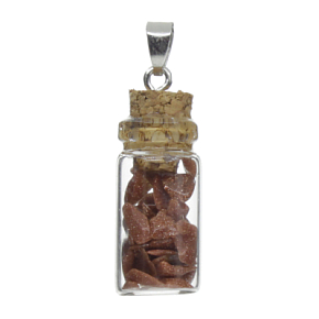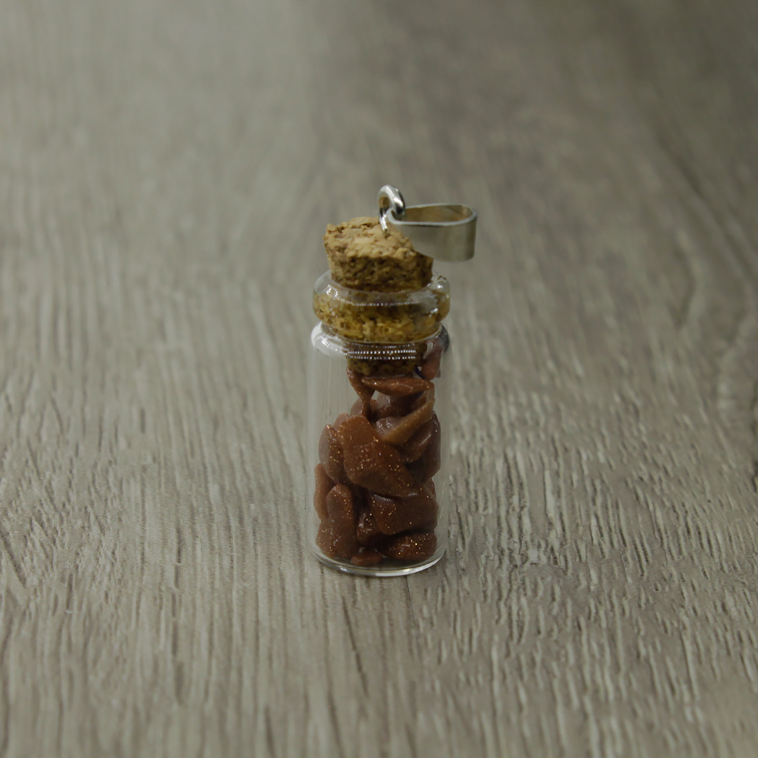 Миниатюрная подвеска в виде бутылочки, наполненной искусственным коричневым авантюрином, прекрасно впишется в Ваш повседневный образ. Размер колбочки: 3 см.