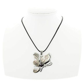 Изящный кулон "Бабочка" с вставками из бежевого перламутра и страз добавит в Ваш образ нежную деталь. Длина шнура 45-49см. Размер кулона 52х60мм.