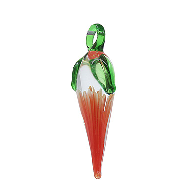 Внутри прозрачного стекла выполнен объемный рисунок из разноцветного стекла. Размер кулона 16х59мм.