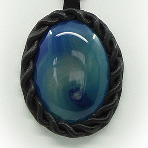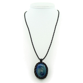 Оригинальный кулон из синего агата. Оправа и веревка для кулона выполнены из натуральной кожи. Размер камня 29 х 39мм. Длина кулона 70см. Цвет и рисунок камня может отличаться от фотографии.