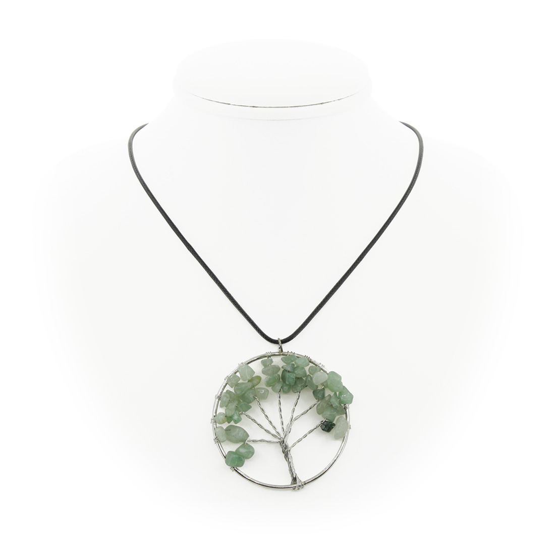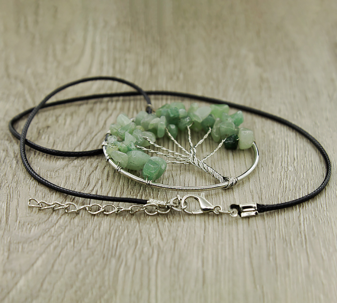Авантюрин зеленый, кулон на веревочке "Дерево"