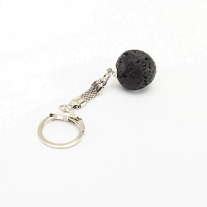 Брелок с подвеской из лавы вулканической в виде шара 20мм. Длина брелока 8,5 см. Металл: ювелирный сплав.