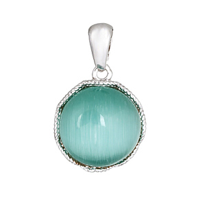 Подвеска из серебра 925 пробы с кошачьим глазом синтетическим, покрытие: Родий. Средний вес изделия 3,58 гр.