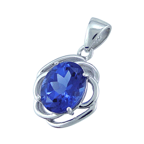 Подвеска из серебра 925 пробы с танзанитом синтетическим, покрытие: Родий. Средний вес изделия 2,27 гр.