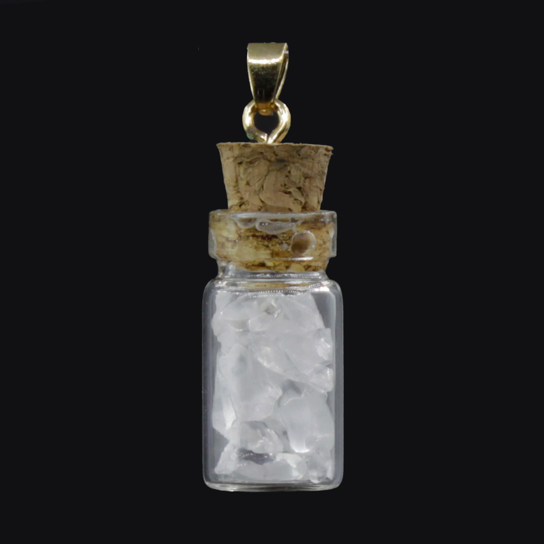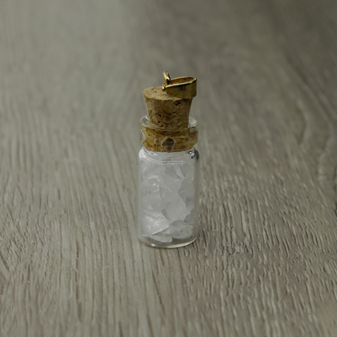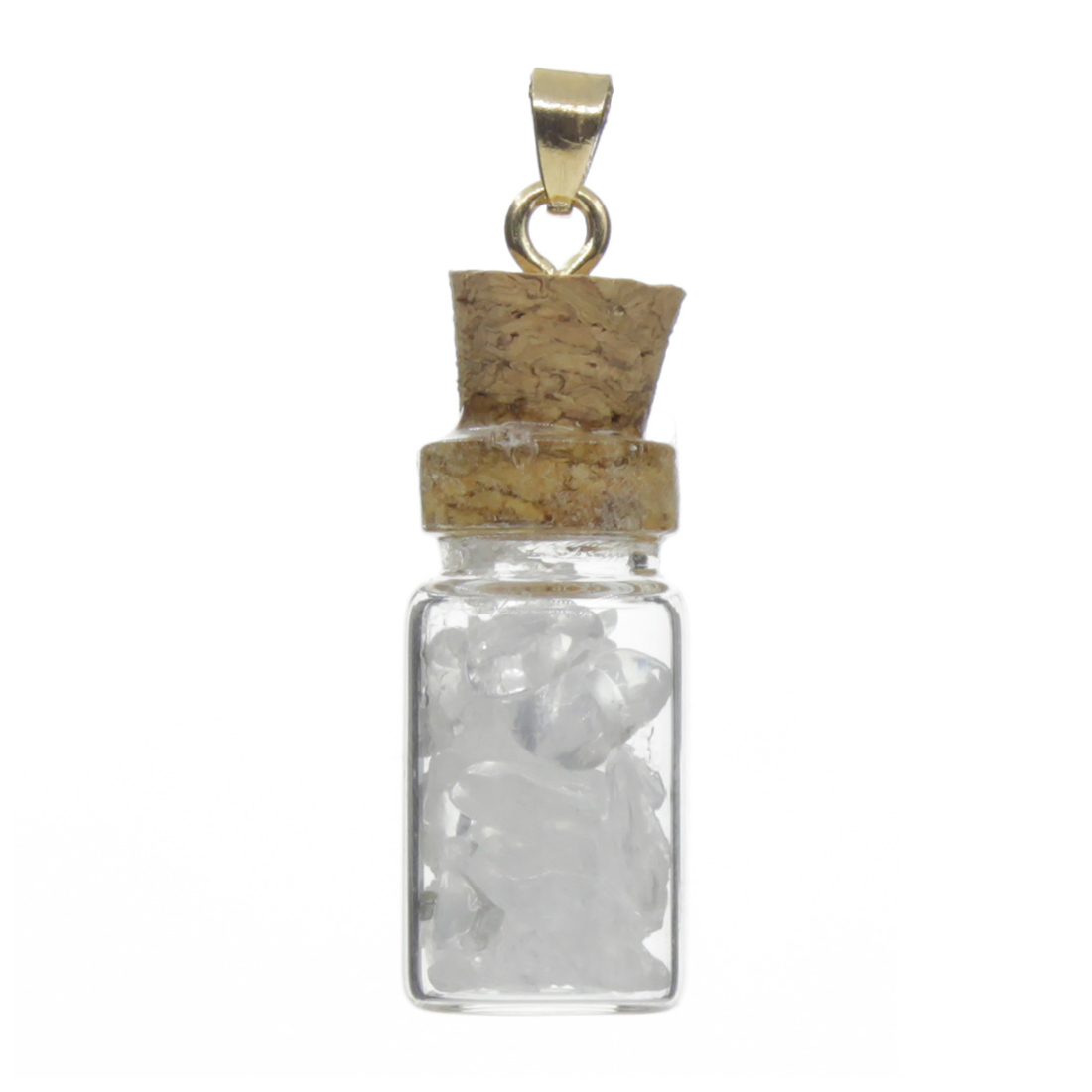 Миниатюрная подвеска в виде колбочки, наполненной натуральным горным хрусталём, прекрасно впишется в Ваш повседневный образ. Размер колбочки: 3 см.