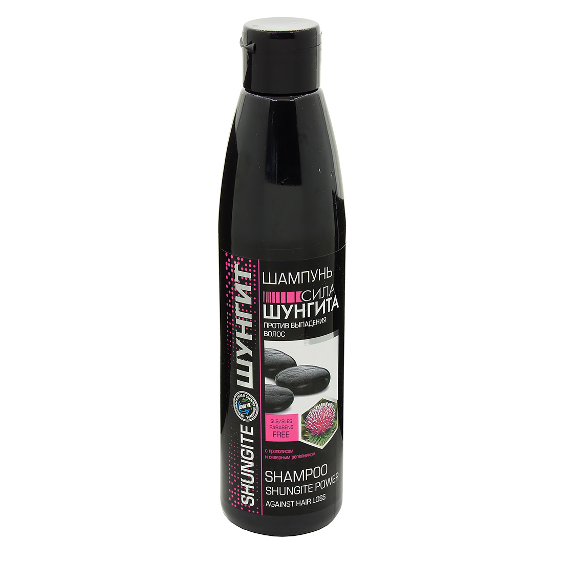 Шампунь «Сила шунгита» против выпадения с прополисом и северным репейником.