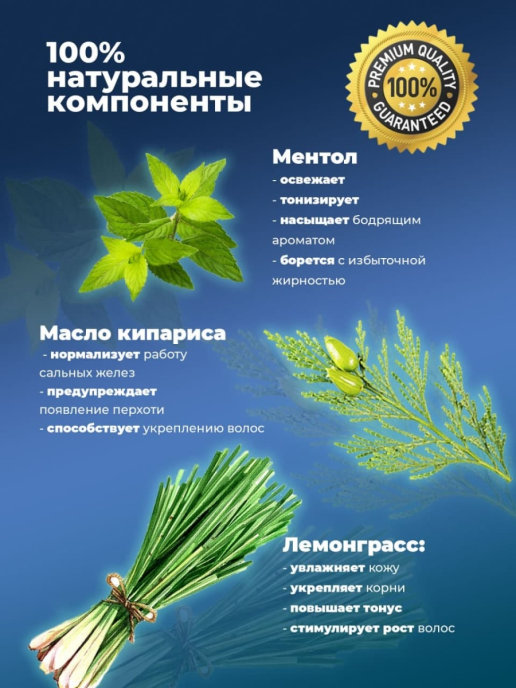 Ментол освежает и тонизирует кожу, насыщает ее бодрящим ароматом, борется с избыточной жирностью волос, позволяет им дольше оставаться чистыми и блестящими.