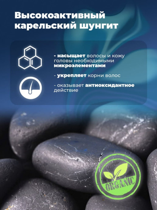 Aqua (деминерализованная вода с шунгитом), Sodium Laureth Sulfate, Cocamidopropyl Betainе, Sodium Chloride, Glycerin, Propanediol, Coco-Glucoside, Glycol Distearate, Cocamide MEA, Laureth-10, PEG—40 Hydrogenated Castor Oil, Menthol (ментол), Methyl Lactate, Pelos (шунгит), Mentha Рiperita (Peppermint) Leaf Extract (мята), Cupressus Sempervirens Oil (масло кипариса), Cymbopogon Schoenanthus (Lemongrass) Extract (лемонграсс), PEG-7 Glyceryl Cocoate, PEG-200 Hydrogenated Glyceryl Palmate, Polyquaterniun-39, Tetrasodium EDTA, Citric Acid, Methylchloroisothiazolinone, Methylisothiazolinone, Parfum, CI 42090