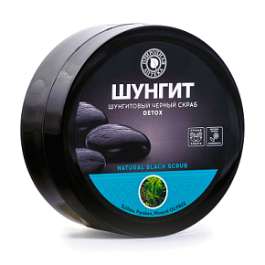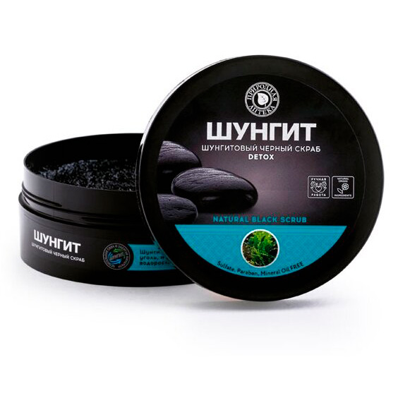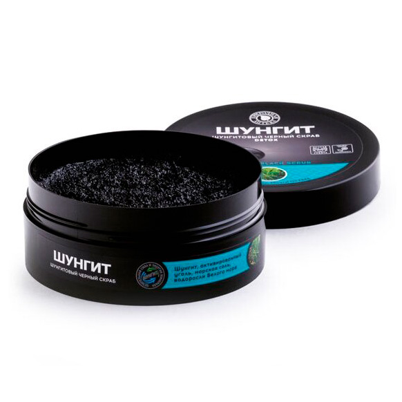 Шунгитовый черный скраб изготовлен на основе уникального минерала шунгит, активированного угля, морской соли и экстрактов морских водорослей.