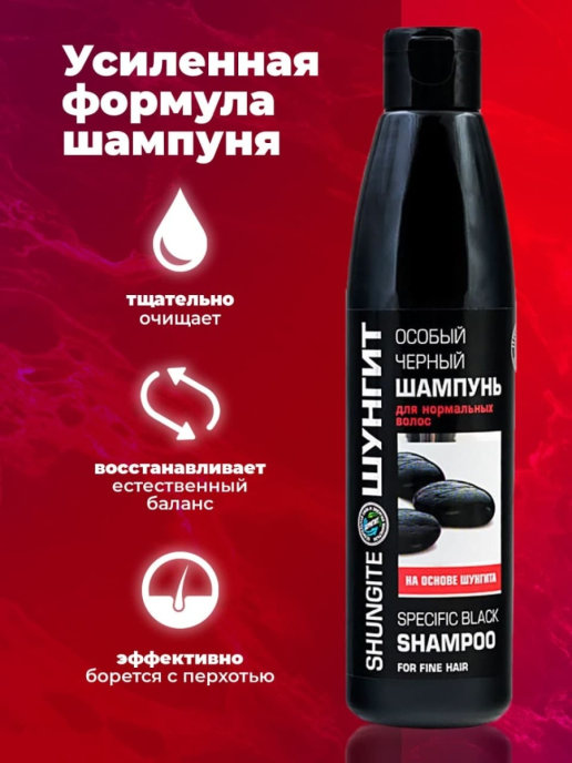 Шампунь особый черный «Для нормальных волос» серии «Шунгит»