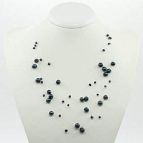 Легкое колье из черного жемчуга на леске. На теле леска становиться незаметной и возникает ощущение невесомой жемчужной россыпи на декольте. Длина изделия 45см.