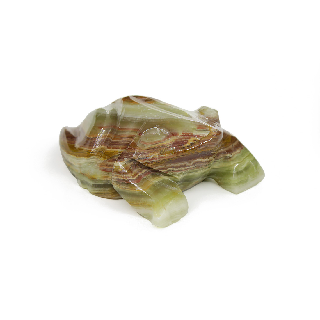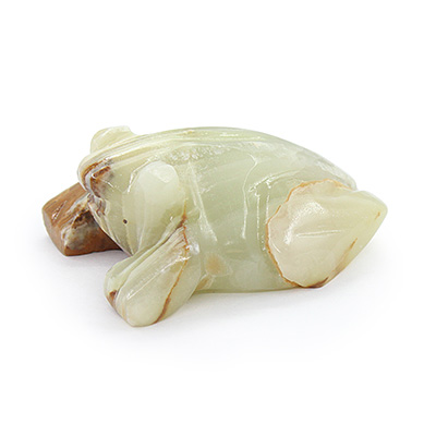 Лягуша символизирует любовь и плодородие. Считается, что она приносит удачу и везение в бизнесе. Высота фигурки 2,5см, длина 6,5 см. Рисунок камня может отличаться от фотографии.