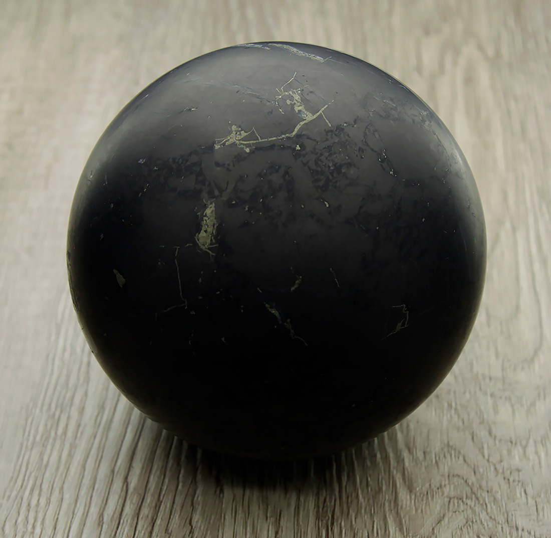 Шар из натурального шунгита станет заметным элементом Вашей коллекции. Диаметр шара 96мм. Вес 1160г.