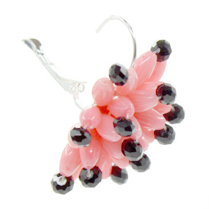 Серьги "Астра" коралл розовый с гранеными вставками "шпинель"
