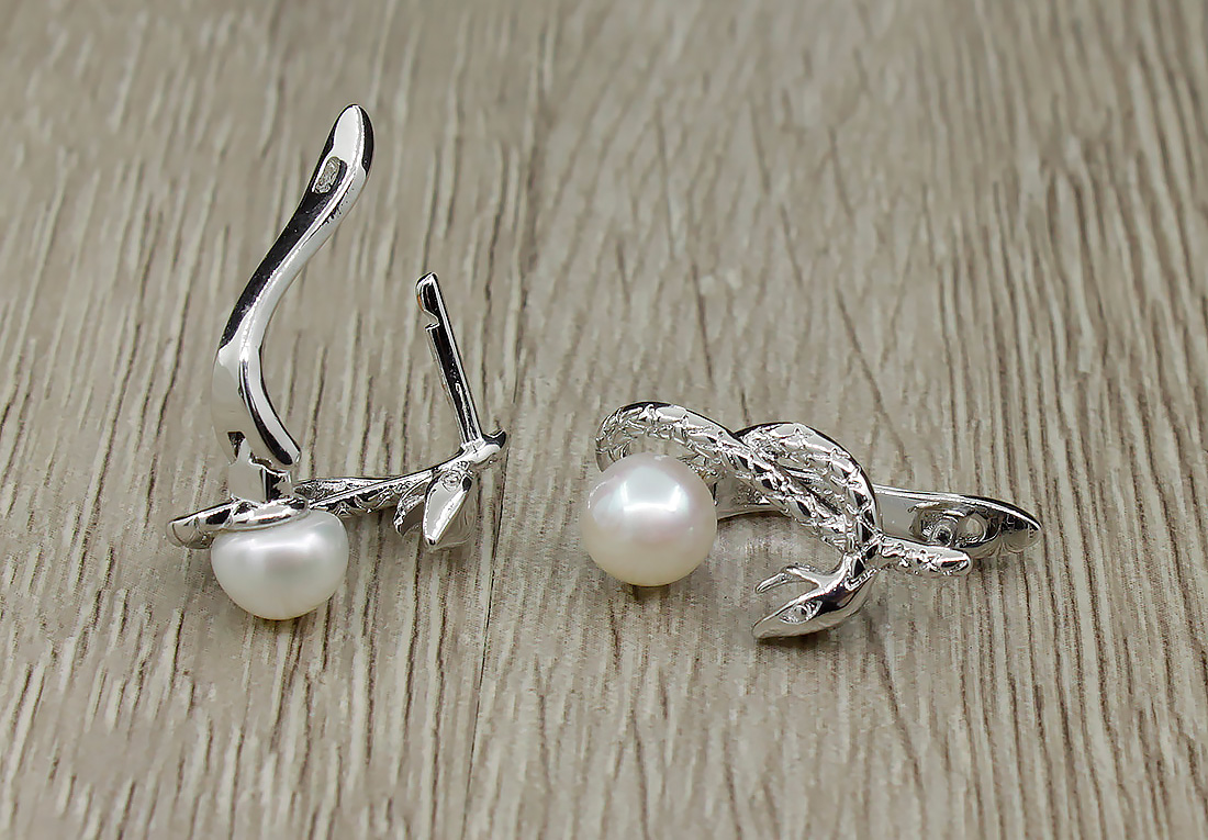 Серьги жемчуг белый 6мм "Жемчужинка-змея"