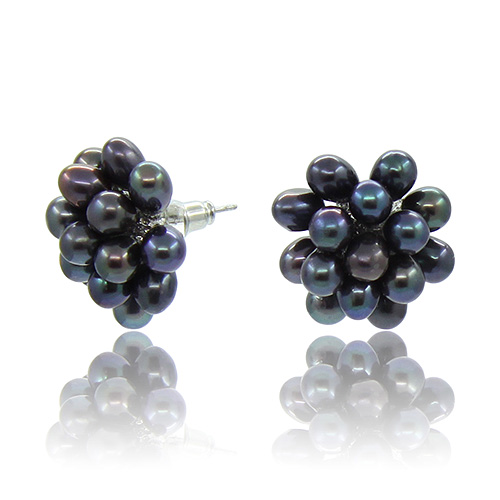 Серьги "Гроздь-мини" жемчуг черный 5мм