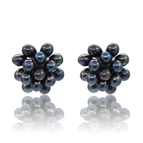 Изысканные серьги-гвоздики исполнены в виде грозди черных жемчужин. Диаметр сережки примерно 22мм.