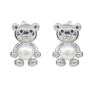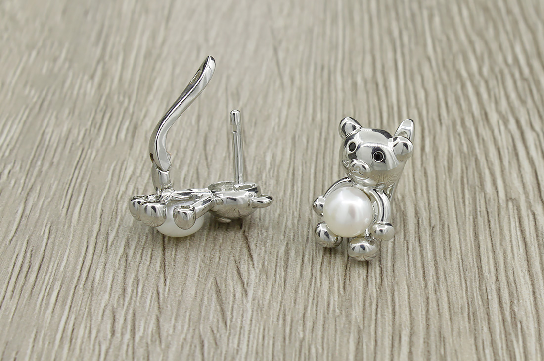 Маленькие и аккуратные сережки в виде медвежонка с белым жемчугом. Размер жемчуга 6мм. Английская застежка