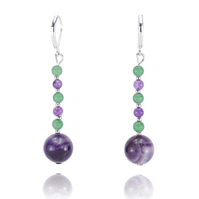 Серьги "Аиша" из натурального аметиста и хризопраз