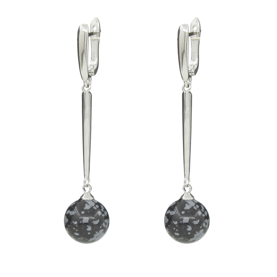 Серьги "Капи" снежный обсидиан шарик 12мм