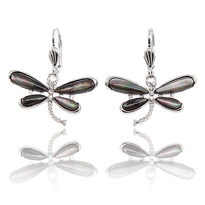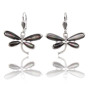 Легкие и изящные серьги с английским замком. Крылышки стрекозок украшены черным перламутром. При изготовлении застежек был использован ювелирный сплав.