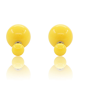 Яркие серьги-пусеты отлично дополнят Ваш весенний образ. Они легко одеваются и легко снимаются. В серьгах используется два глянцевых шарика желтого цвета диаметром 8мм и 15мм. Материал: облегченное стекло.