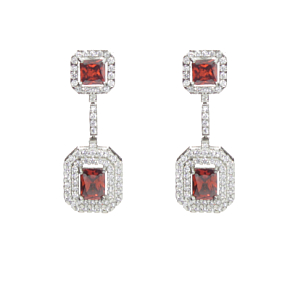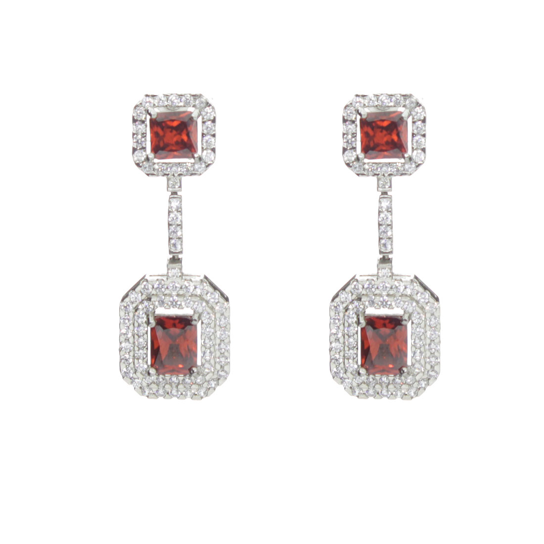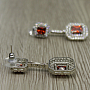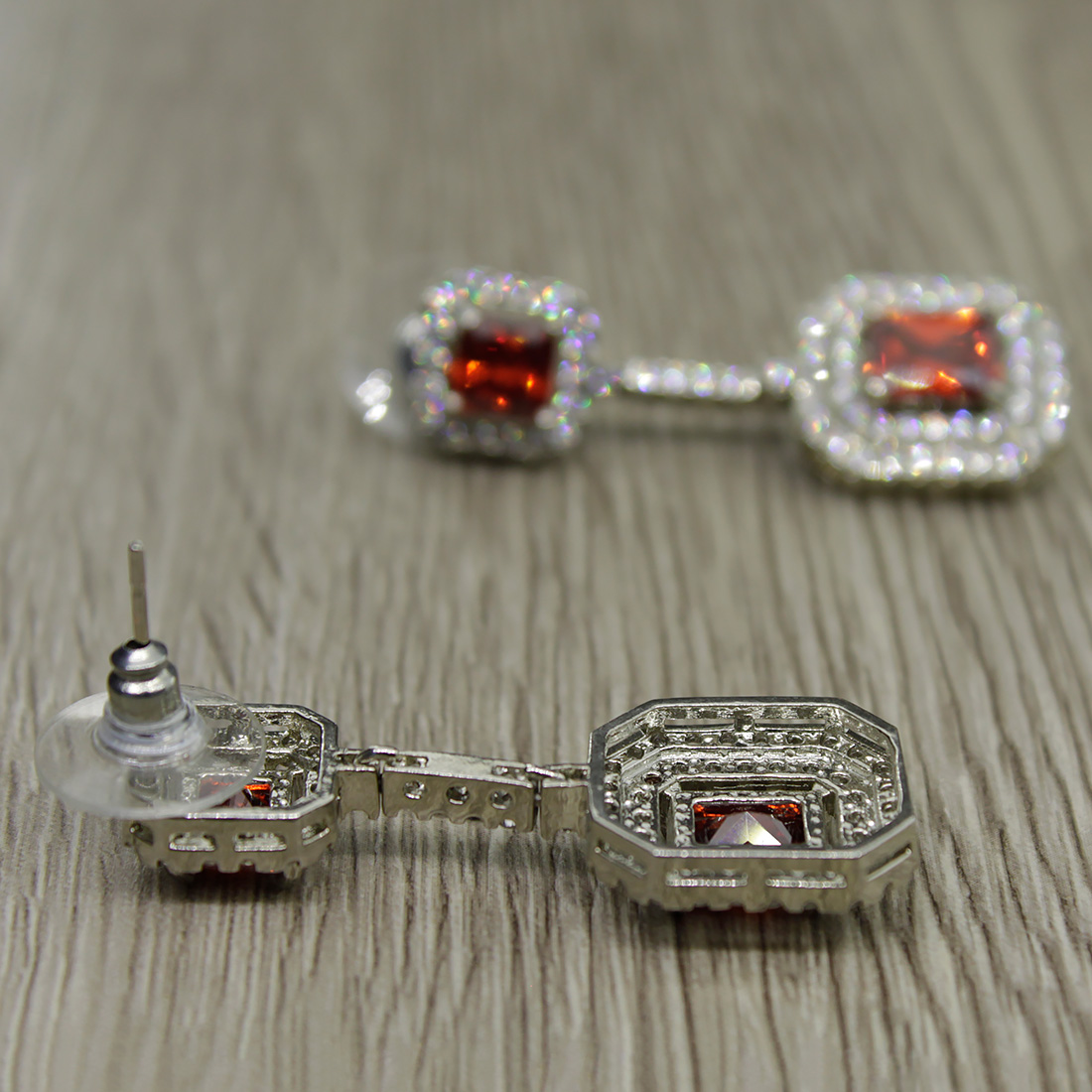 Изящные серьги с фианитом «гранат» - яркий элемент Вашего повседневного или праздничного образа. Длина серьги с застежкой 39мм. Размеры фианитов 6x6мм и 6x8мм.
