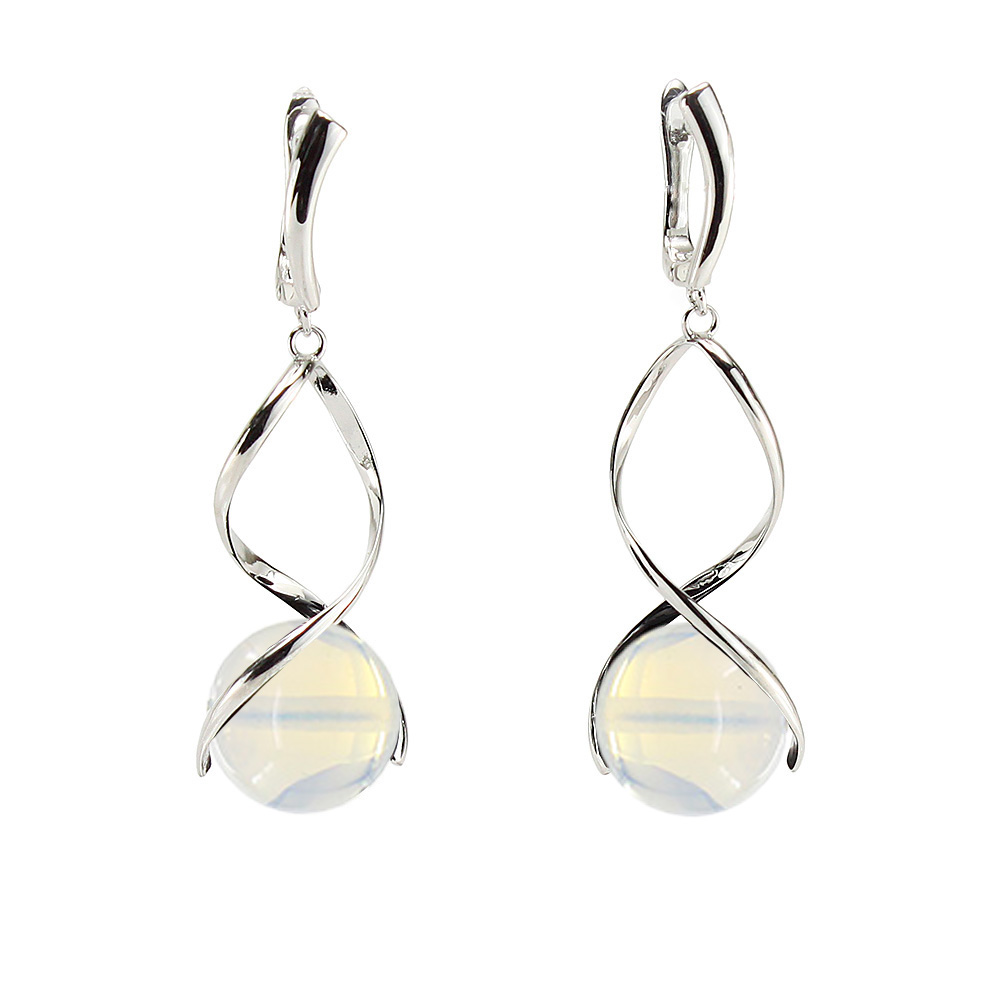 Прелестные серьги с опалитом (имитация лунного камня) - яркий элемент Вашего образа. Голубой и желтый цвет, которым переливается опалит, придадут легкость Вашему образу. Длина сережки 55мм. Диаметр шара 12мм.