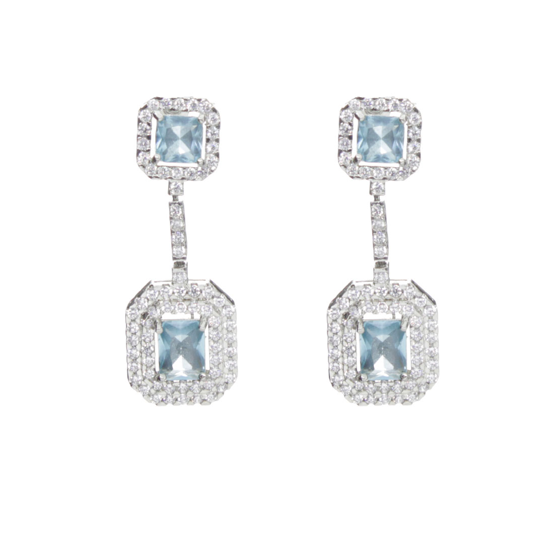 Изящные серьги с фианитом «голубой топаз» - яркий элемент Вашего повседневного или праздничного образа. Длина серьги с застежкой 39мм. Размеры фианитов 6x6мм и 6x8мм.