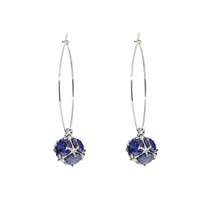 Роскошные серьги с 6 фианитами цвета "сапфир". Размер декоративной части 1,3мм. Диаметр застёжки 4см. Размер камня 8мм.