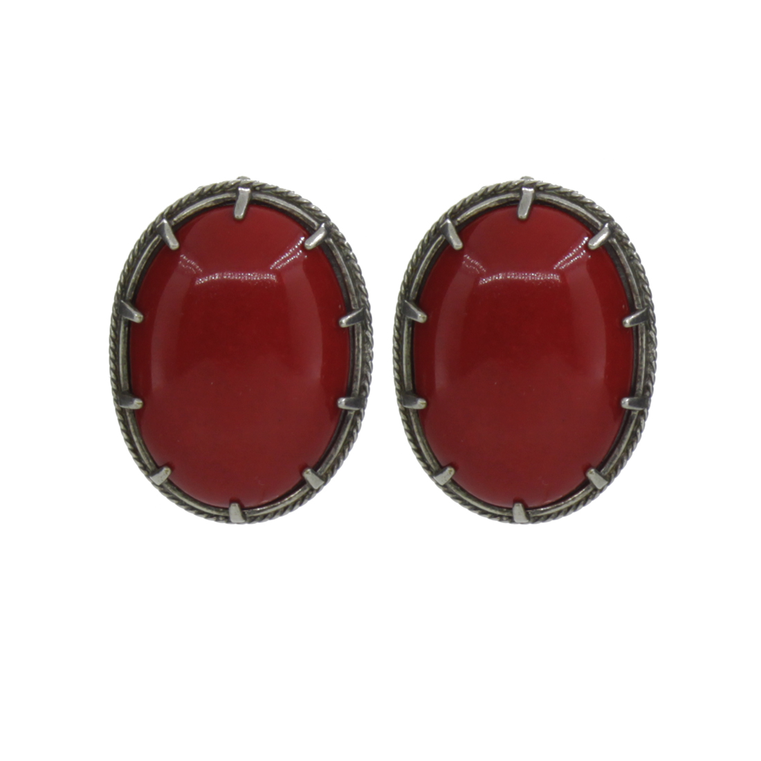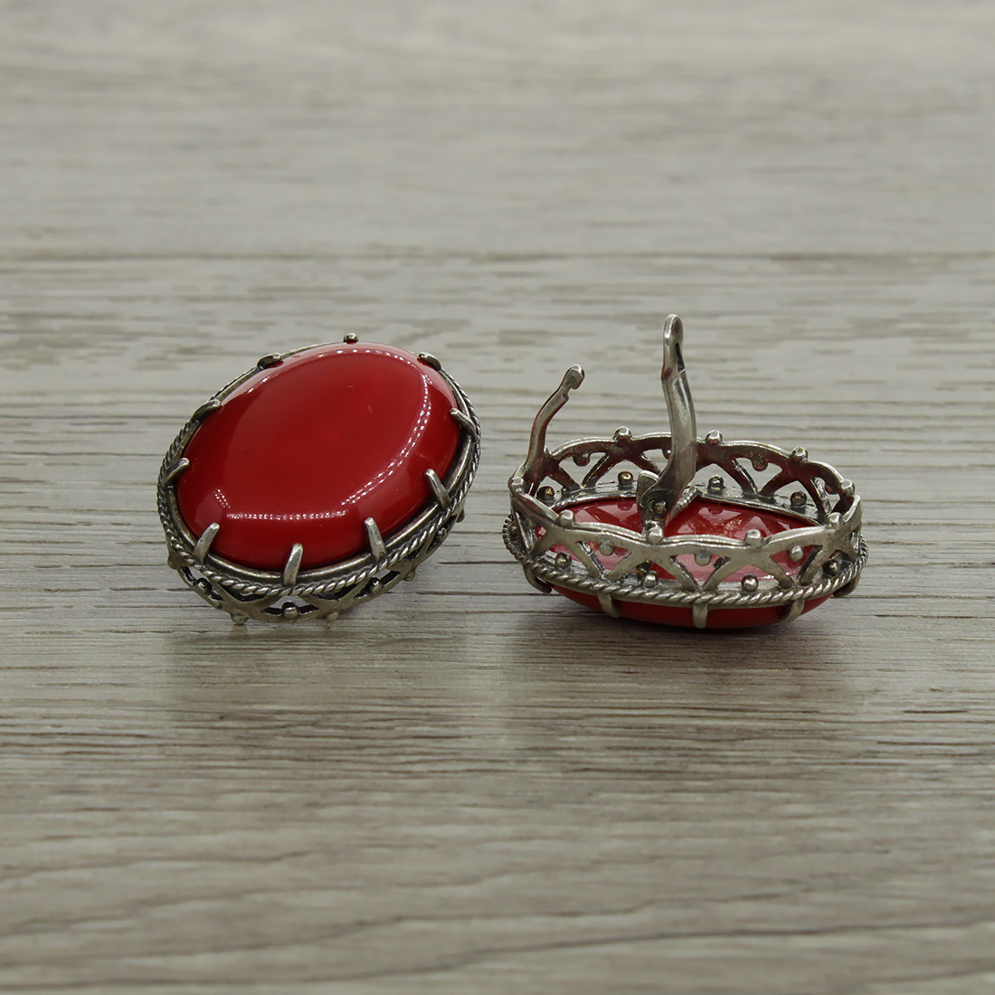 Серьги выполнены из красного коралла (имитация). Длина сережки 31мм. Размер камня в оправе 28х21мм.