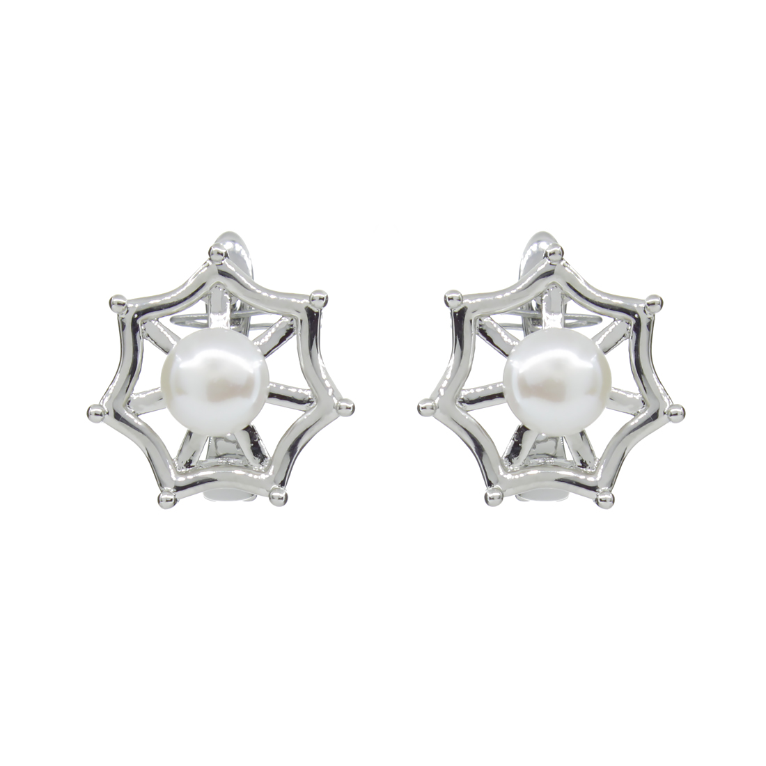 Маленькие и аккуратные сережки в виде паутинки с белым жемчугом. Размер жемчуга 6мм