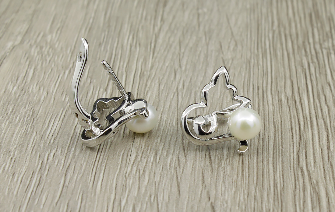 Серьги жемчуг белый 7мм "Жемчужинка-кошечка"