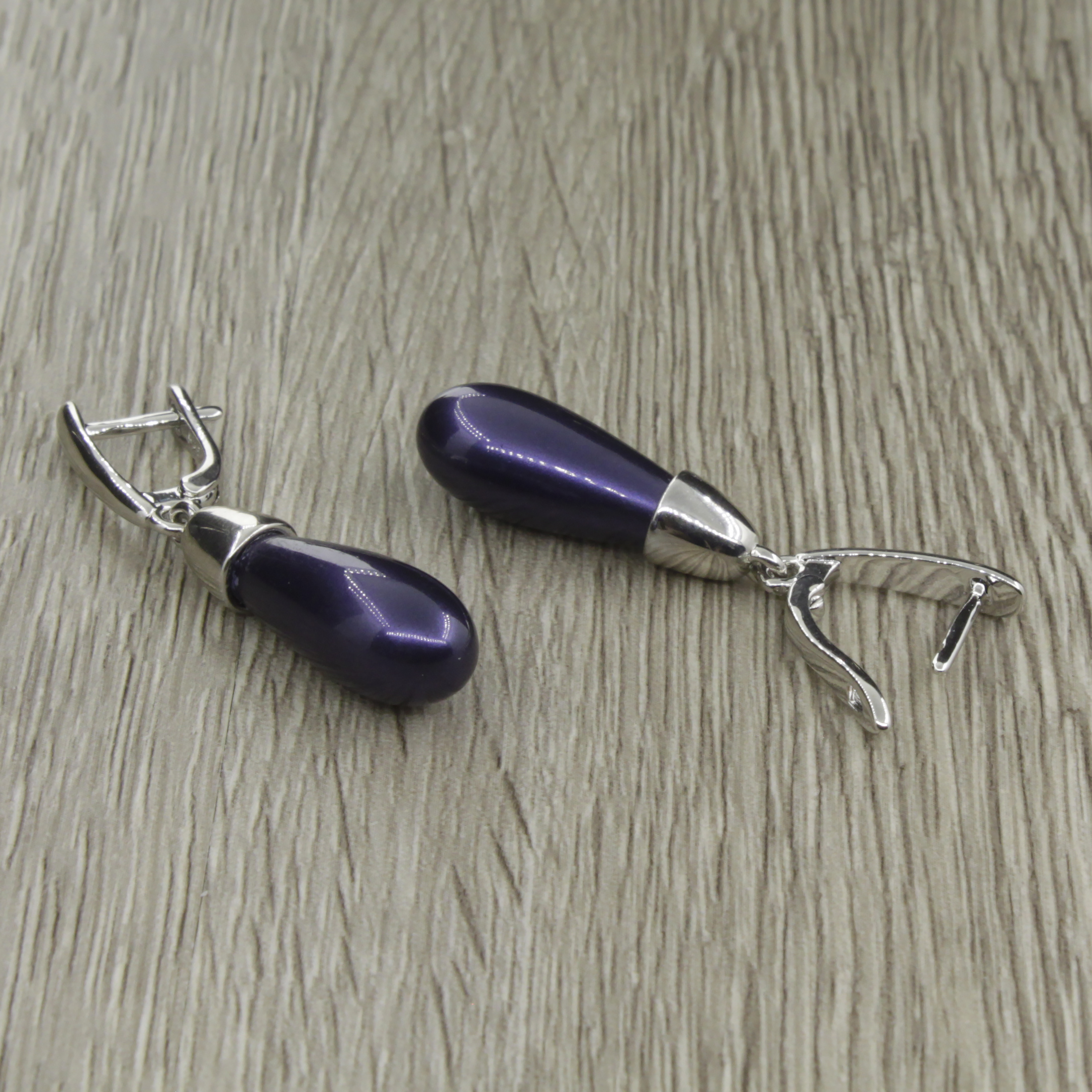 Утонченные сережки из фиолетовой майорки в форме капелек с ярким блеском, такие серьги будут эффектно смотреться в любое время года. Размер 8х42мм.