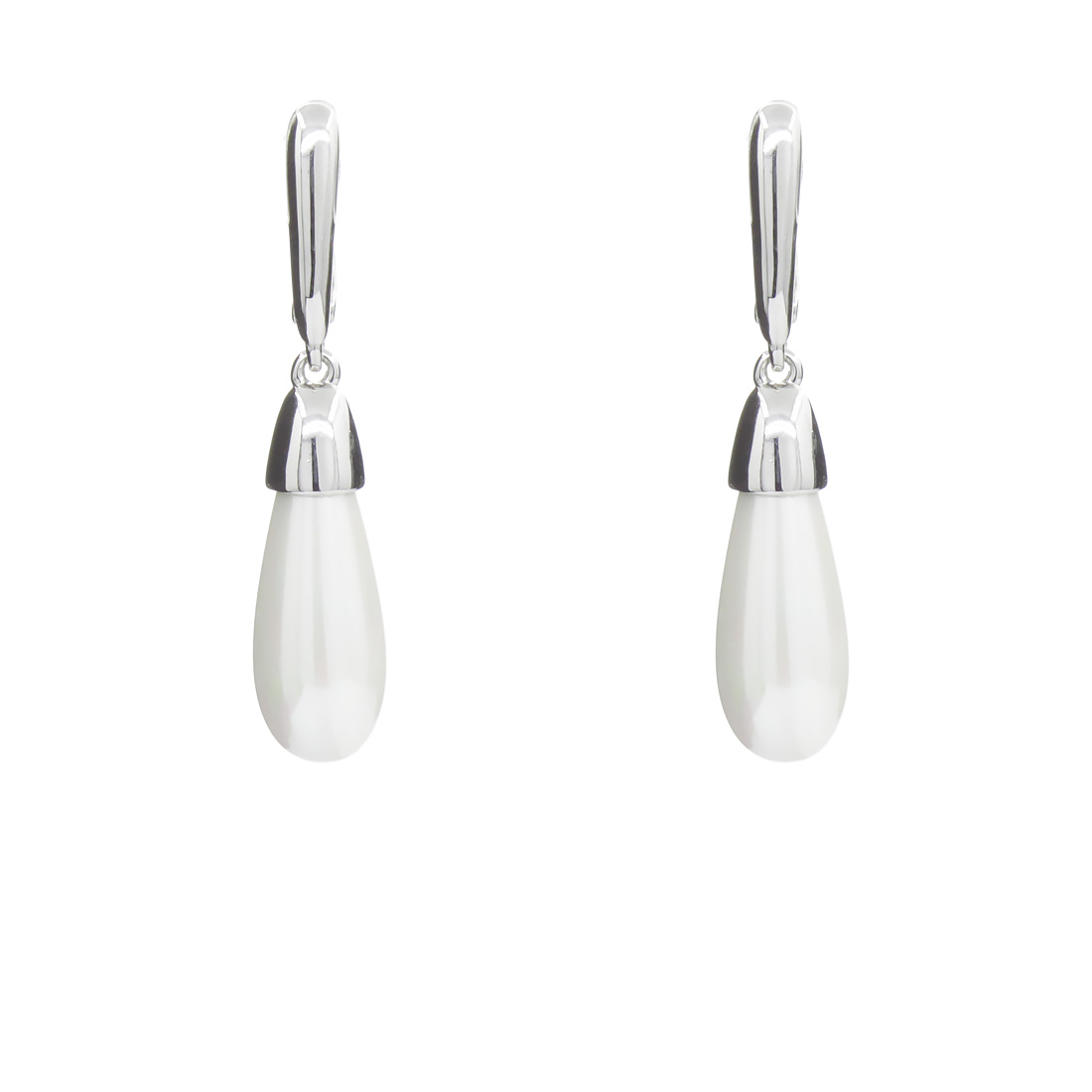 Утонченные сережки из белой майорки в форме капелек с ярким блеском, такие серьги будут эффектно смотреться в любое время года. Размер 8х42мм.