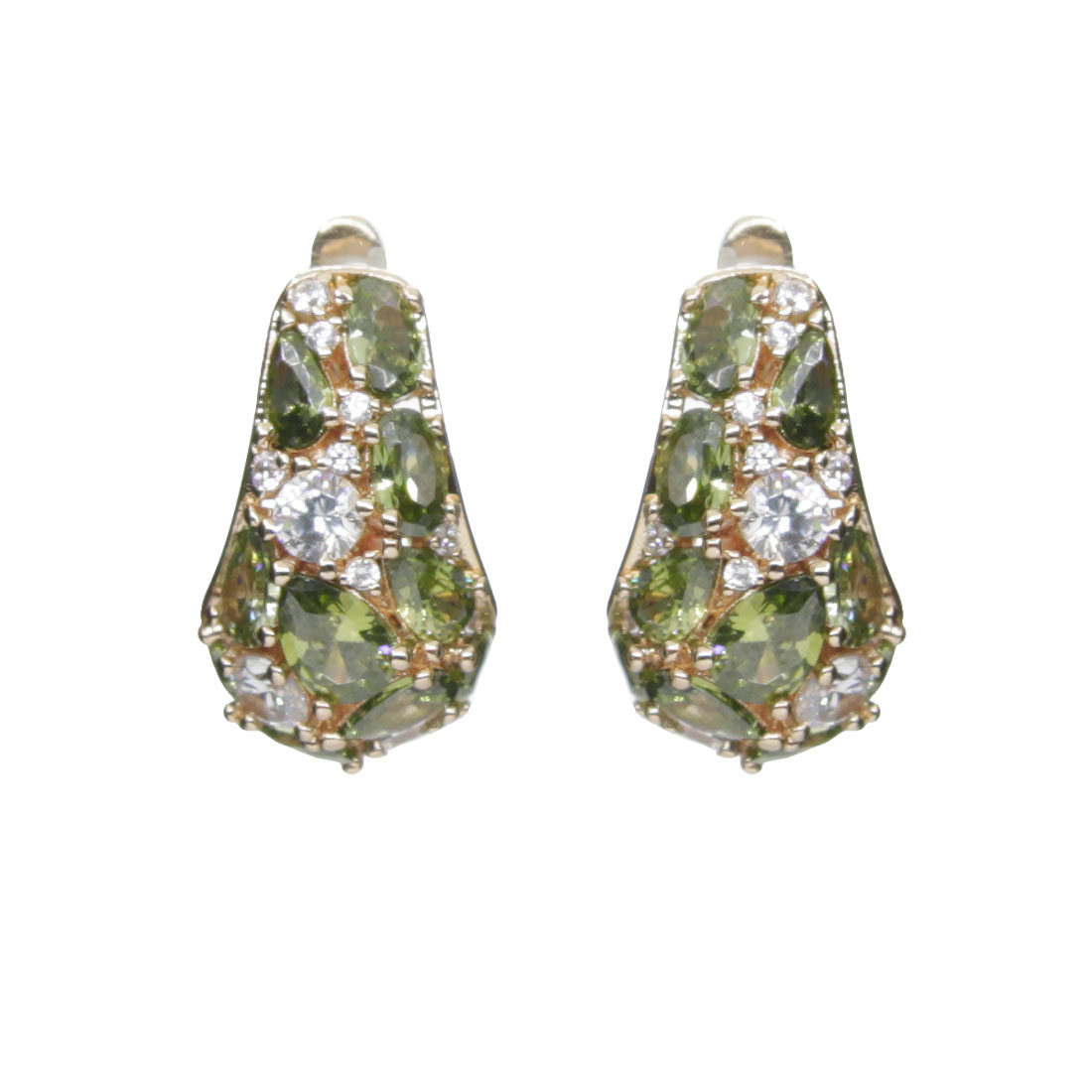 Серьги "Жаклин", фианит "берилл" и "хрусталь", покрытие под золото