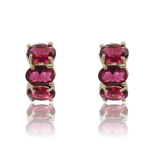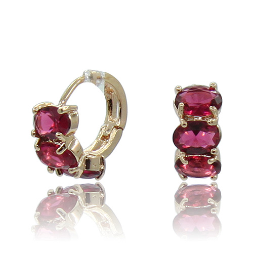Оригинальные серьги с фианитами цвета "рубин". Размер передней части сережек 7х15мм.