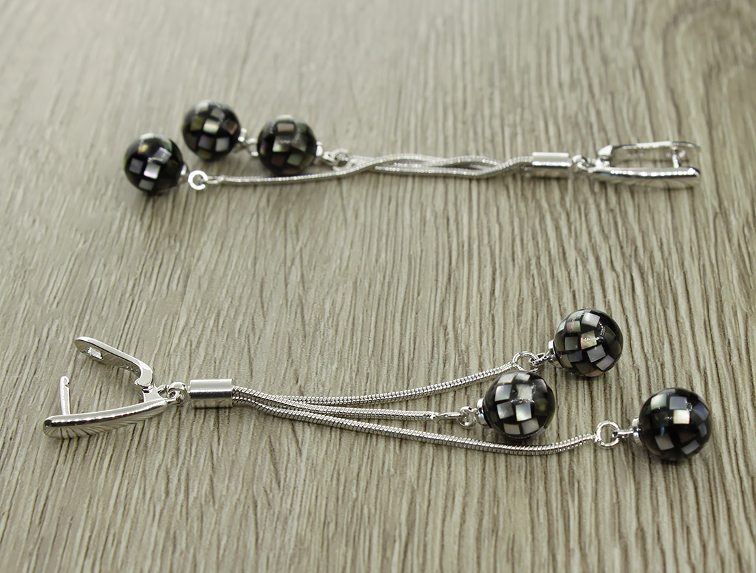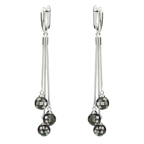 Серьги "Галатея" выполнены из кусочков перламутра. Застежка с родированным покрытием. Диаметр шариков 9мм. Длина серёжек с застёжкой 8см.