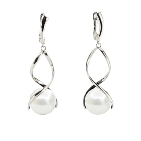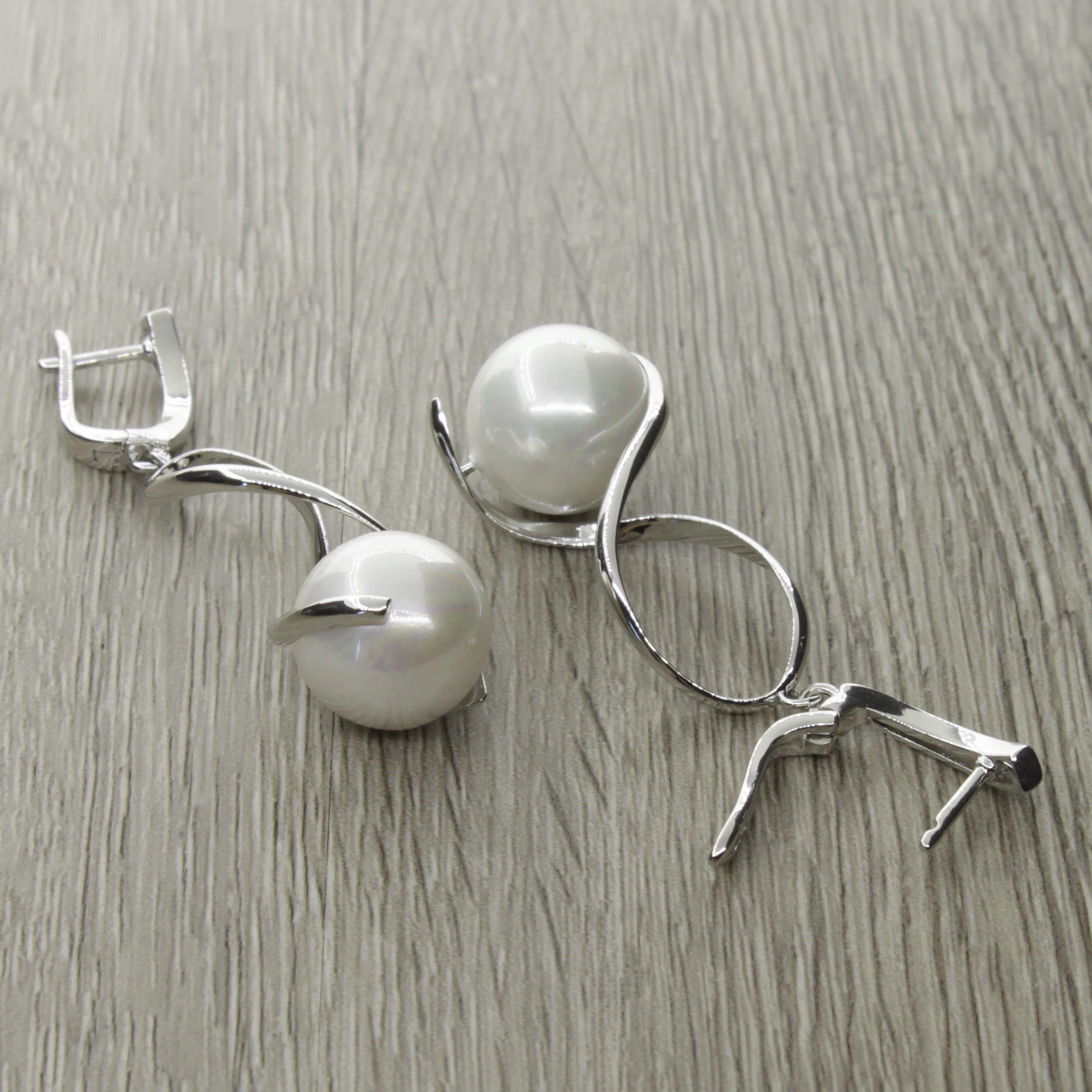 Серьги выполнены из белой майорки и ювелирного сплава. Длина сережки 55мм. Диаметр шара 12мм.