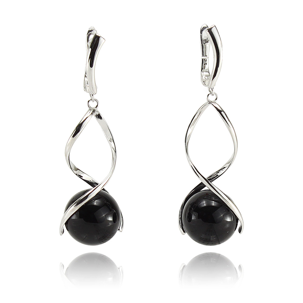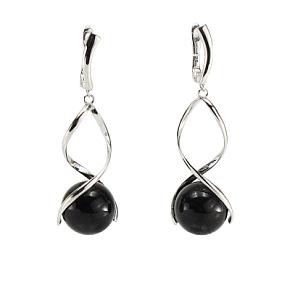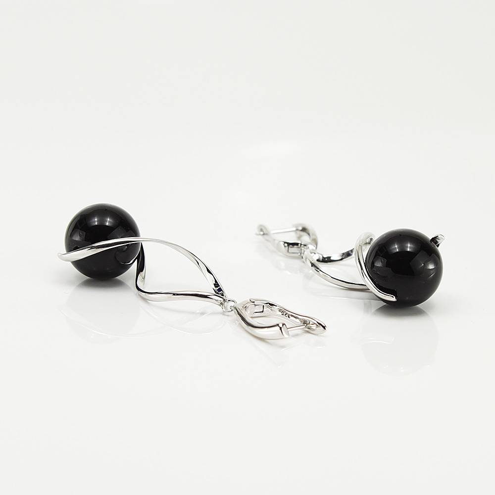 Серьги выполнены из ювелирного сплава и натурального черного агата. Длина сережки 55мм. Диаметр шара 12мм.
