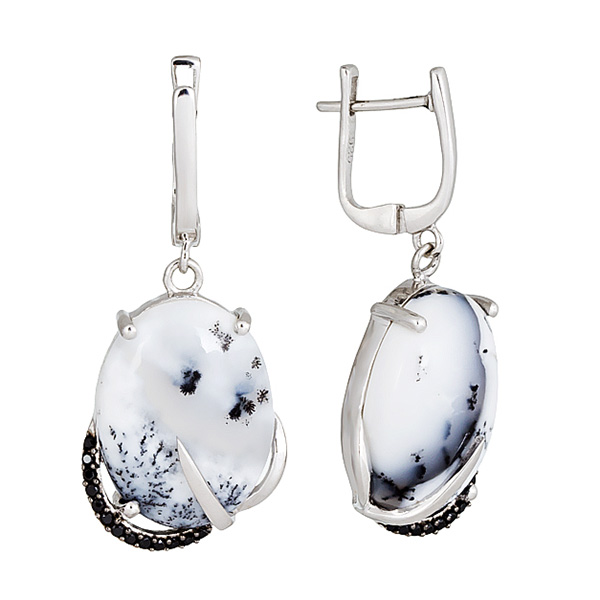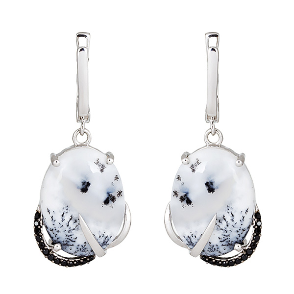 Серьги из серебра 925 пробы с агатом природным и шпинелью, покрытие: Родий. Средний вес изделия 10,56 гр.