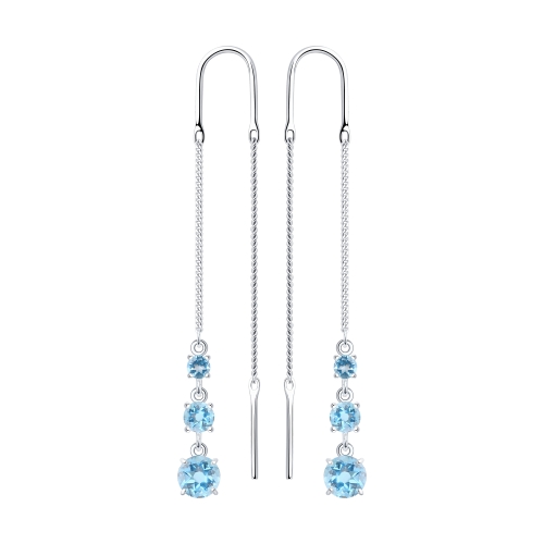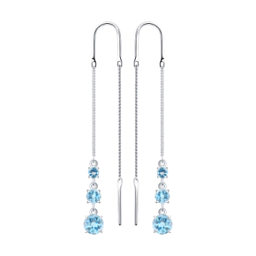 Серьги выполнены из серебра 925 пробы с родиевым покрытием. Вставки из топазов. Длина сережки: 5,8см. Вес: 2,00 г