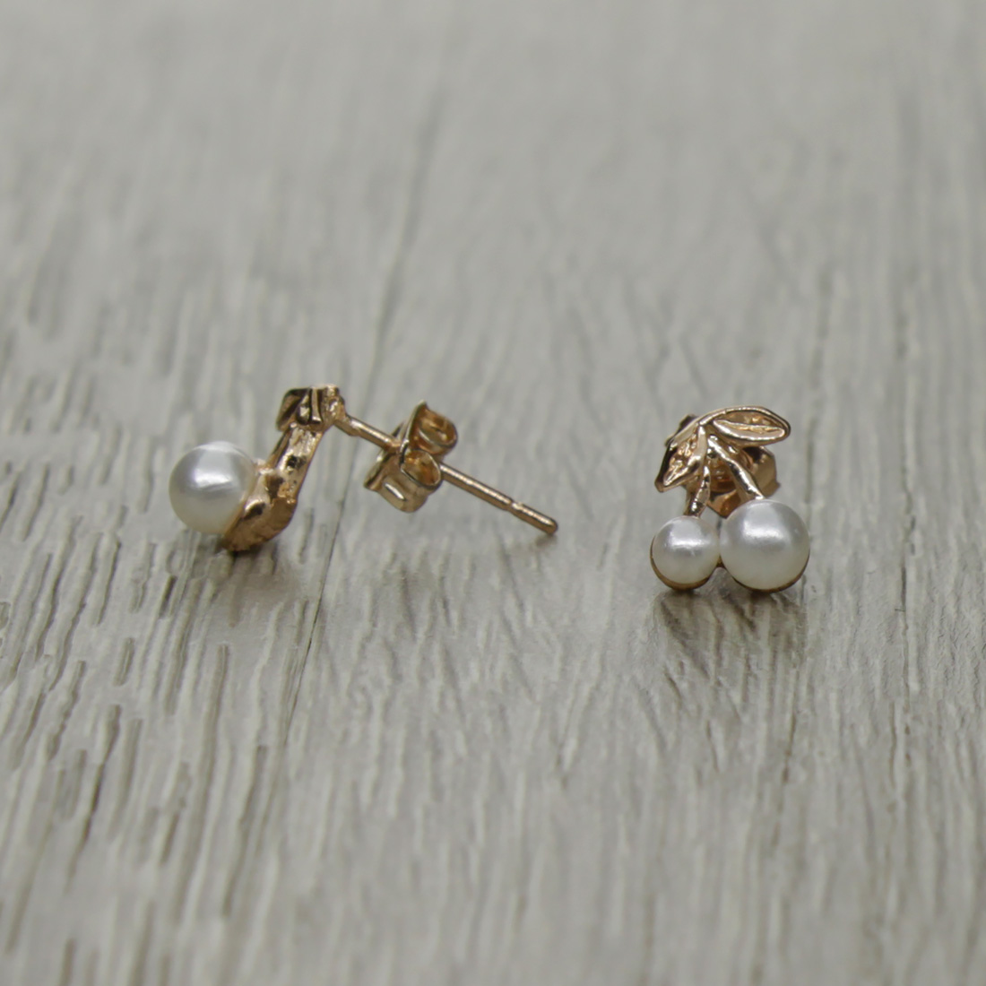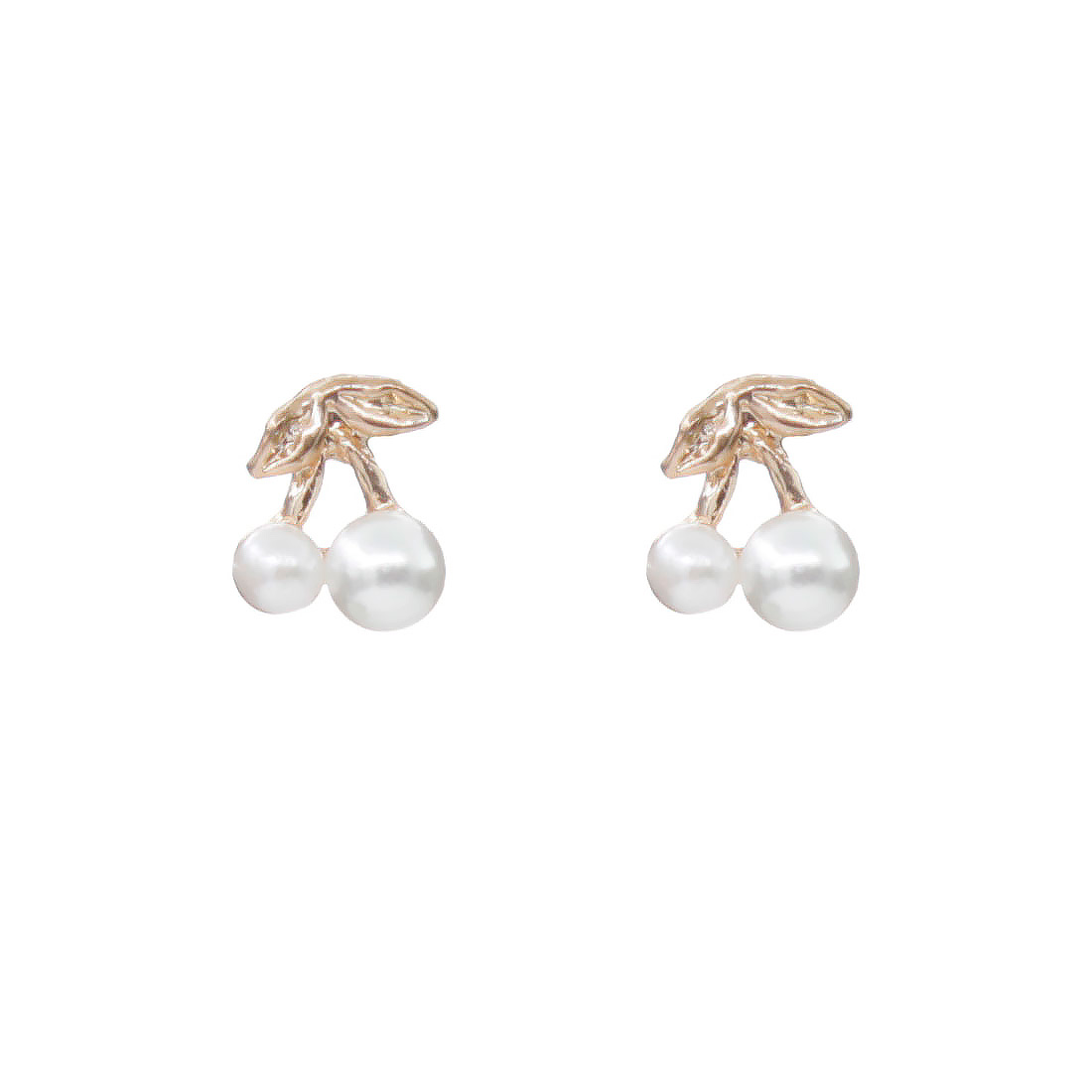 Серьги гвоздики "Вишенки", жемчуг (имитация), покрытие под золото