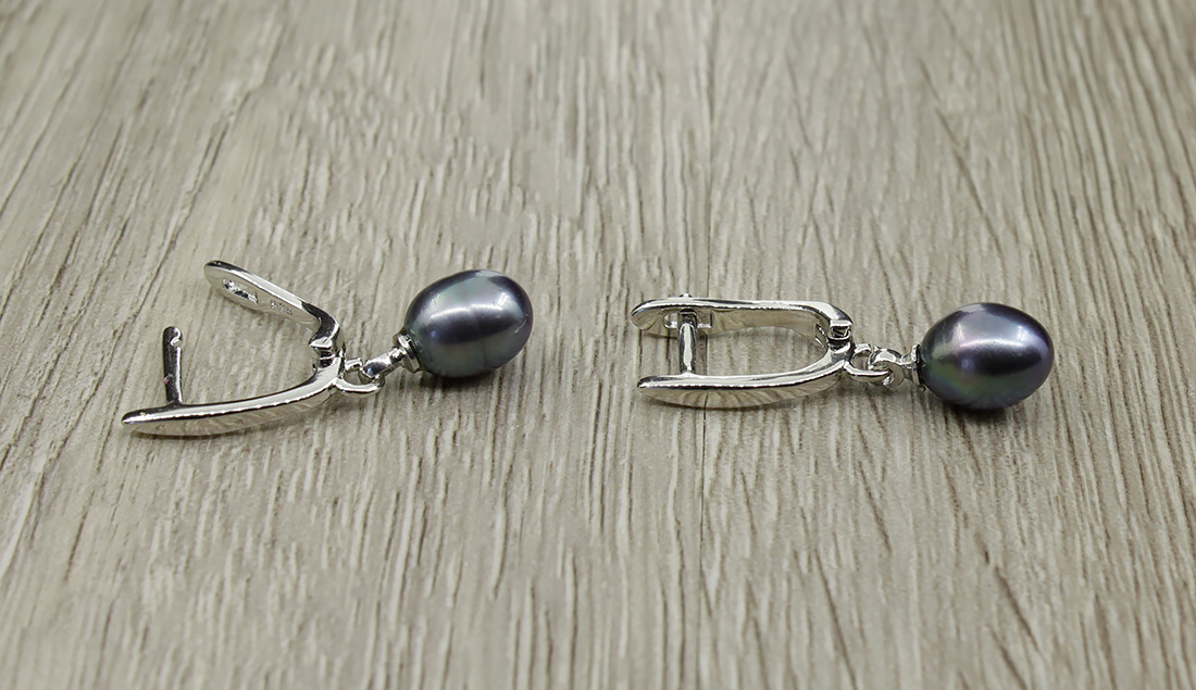 Маленькие и аккуратные сережки с черным жемчугом размером 8мм. Длина сережки с замком 27мм