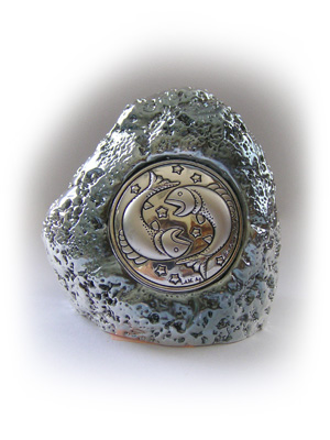 Жемчуг - главный камень рыб. Бледнорозоватый (у берегов Индии), серебряный и желтоватый (в водах Шри-Ланки), светлозеленый (в Японском море), белый (в Австралии), черный (в Мексиканском заливе), розовато-красный (в Калифорнийском заливе) камень. Жемчуг способствует благоденствию и долголетию, приносит счастье. Он придает блеск глазам и охраняет от мук безответной любви, бережет от "дурного глаза", дает способность предвидеть будущее. Кольцо с жемчугом охраняет от воров и от нечестных сделок. Блеск жемчуга зависит от здоровья и настроения его владельца. После смерти владельца камень тускнеет. Кольцо с жемчугом символизирует "слезы тоски".